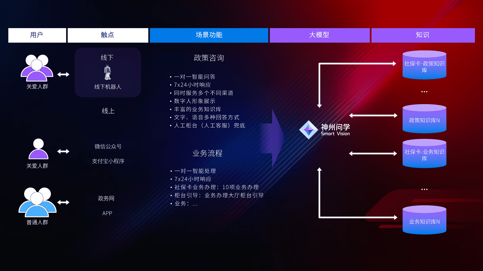 在服务大厅部署客服机器人,,,在线上应用和小程序配置客服数字人,,,,724小时为群众解答常规问题,,客服机器人无法处理的,,,,转现场人工处理。。